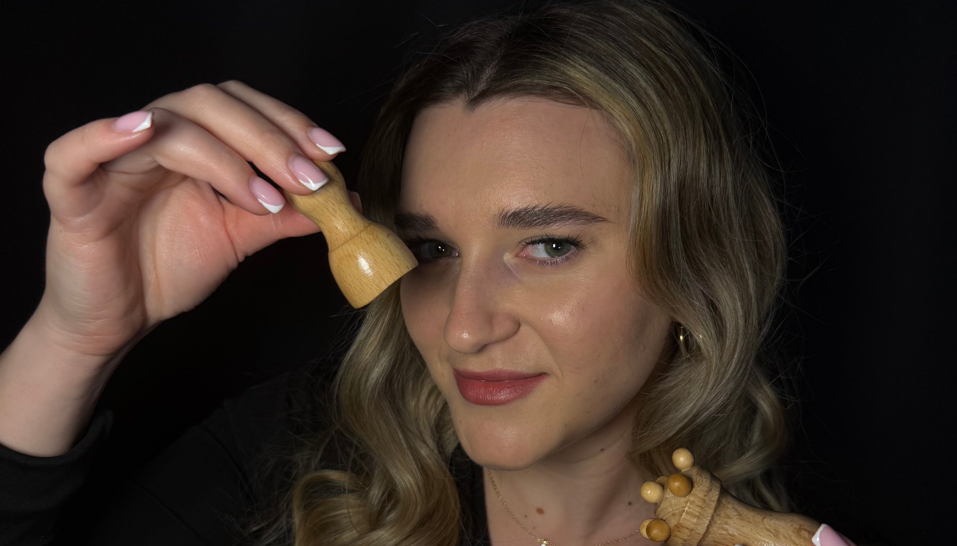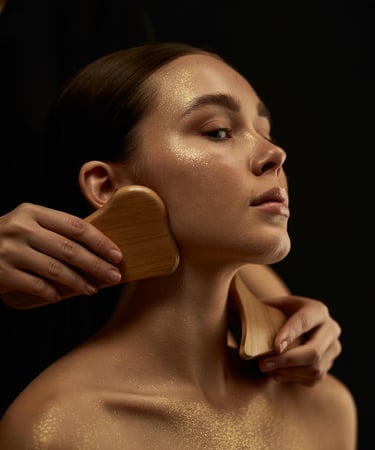 Massaggio viso con strumenti in legno per tonificare, illuminare la pelle e ottenere un naturale effetto lift.